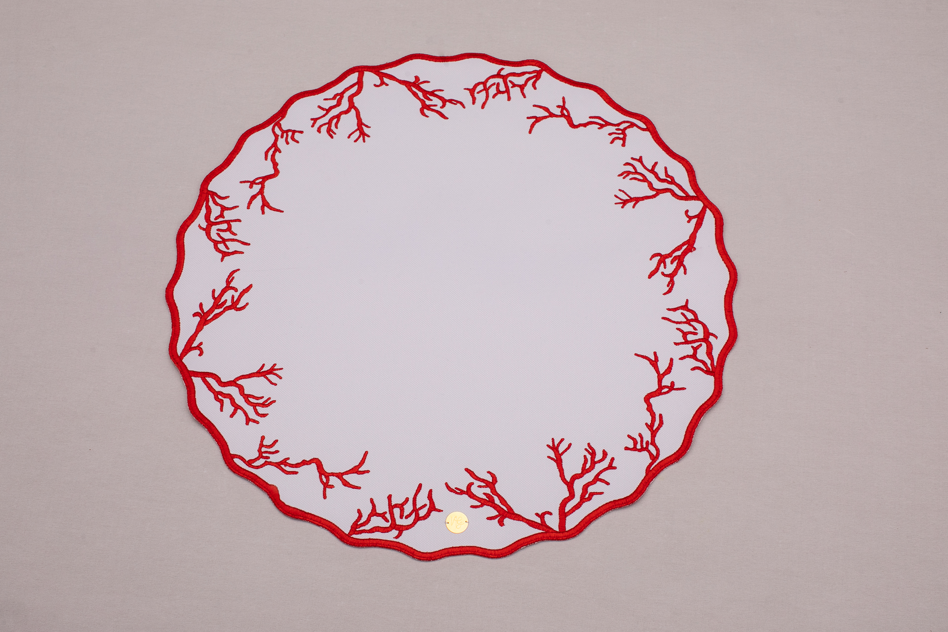 Peça possui bordado clássico por todo seu contorno.