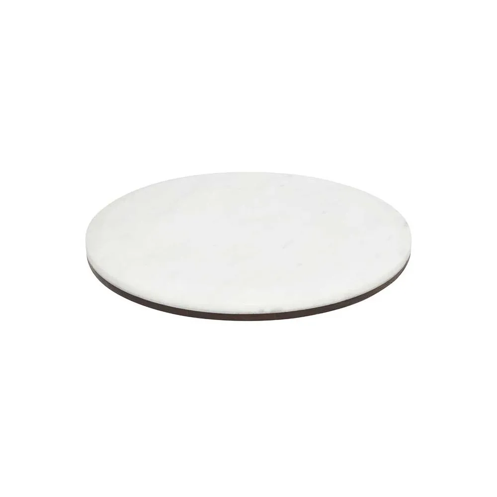 TÁBUA PARA SERVIR EM MÁRMORE E MADEIRA REDONDA 25,4 Cm BRANCO